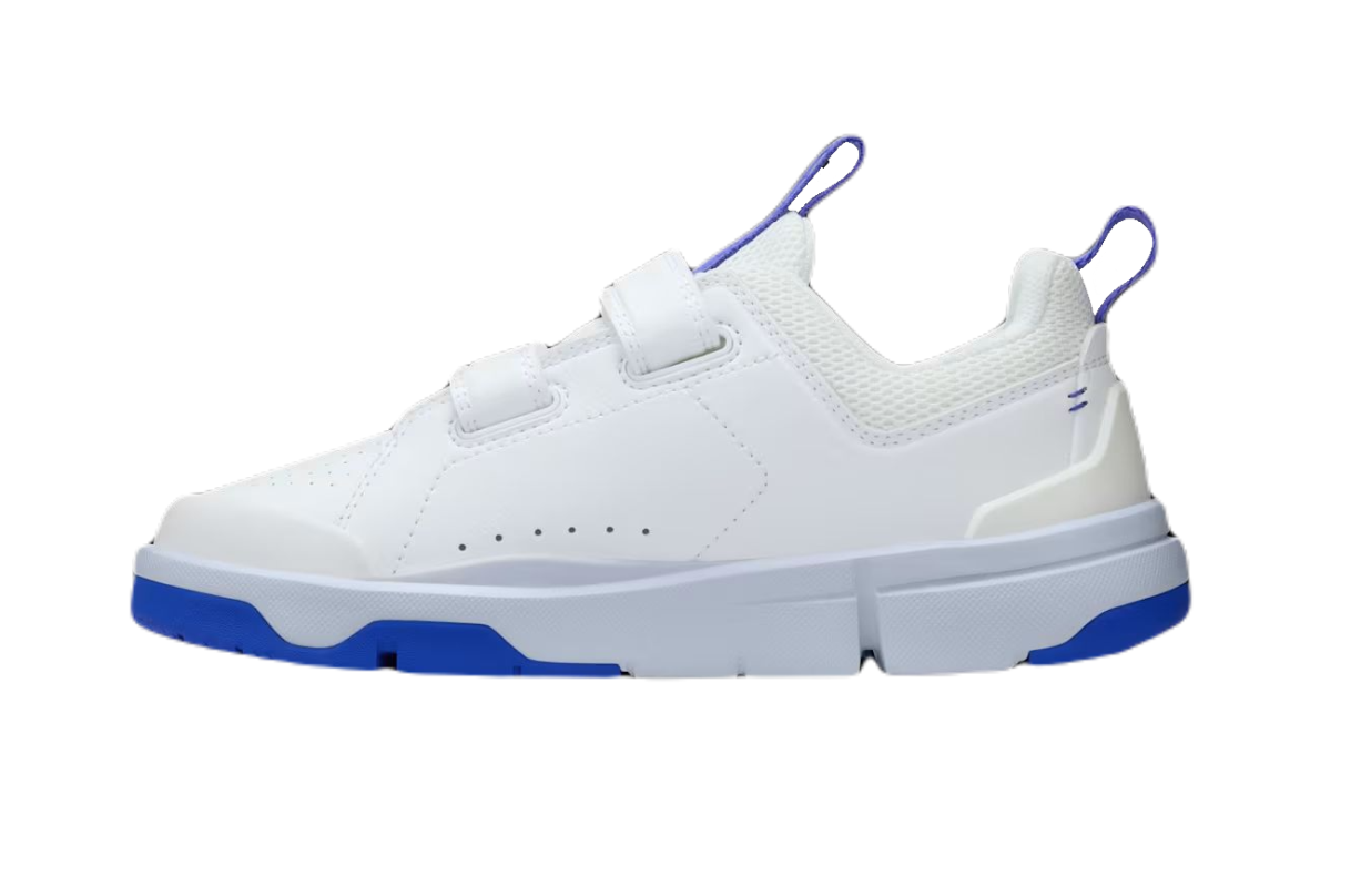 Детская теннисная обувь On The Roger Kids — белый/индиго Детская теннисная обувь премиум-класса, вдохновленная культовыми моделями тенниса для взрослых On The Roger. Выполненные в типичном для швейцарского бренда минималистском ретро-дизайне, они созданы, чтобы обеспечить юным теннисистам максимальный комфорт как на корте, так и в повседневном ношении. Просторные крючки на пятке и язычке, рассчитанные на детскую руку, а также застежки-липучки облегчают надевание и снятие. Верх выполнен из элегантной синтетической кожи. Имеет вентиляционные отверстия, повышающие воздухопроницаемость, и резиновый чехол, дополнительно защищающий пальцы. Технология CloudTec с измененной конструкцией, благодаря которой срабатывает при меньшем весе, отлично амортизирует каждый шаг. Пластина Speedboard под средней частью стопы обеспечивает отличную поддержку и комфорт. Внешняя подошва с гибкими зонами и специальными вырезами гарантирует естественный изгиб и пружинистость при шаге. Резиновая подошва от пятки до носка обеспечивает надежное сцепление с различными поверхностями.