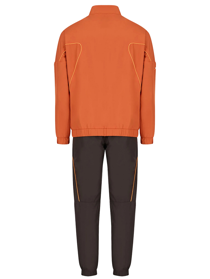 Мужской спортивный костюм EA7 - оранжевый/серый Тонкая, легкая толстовка из полиэстера с полной молнией. Высокий воротник обеспечит защиту. Два боковых кармана на молнии. Подкладка из сетчатых вставок обеспечивает хорошую воздухопроницаемость. Рукава и низ толстовки отделаны резинкой для лучшего прилегания. Широкий и эластичный пояс со шнурками гарантирует, что брюки идеально сидят по вашей фигуре. Два боковых кармана застегиваются на молнию. Ножки заканчиваются резинкой и боковой молнией для повышенного комфорта использования. Спортивный костюм изготовлен из дышащего материала по технологии VENTUS7.