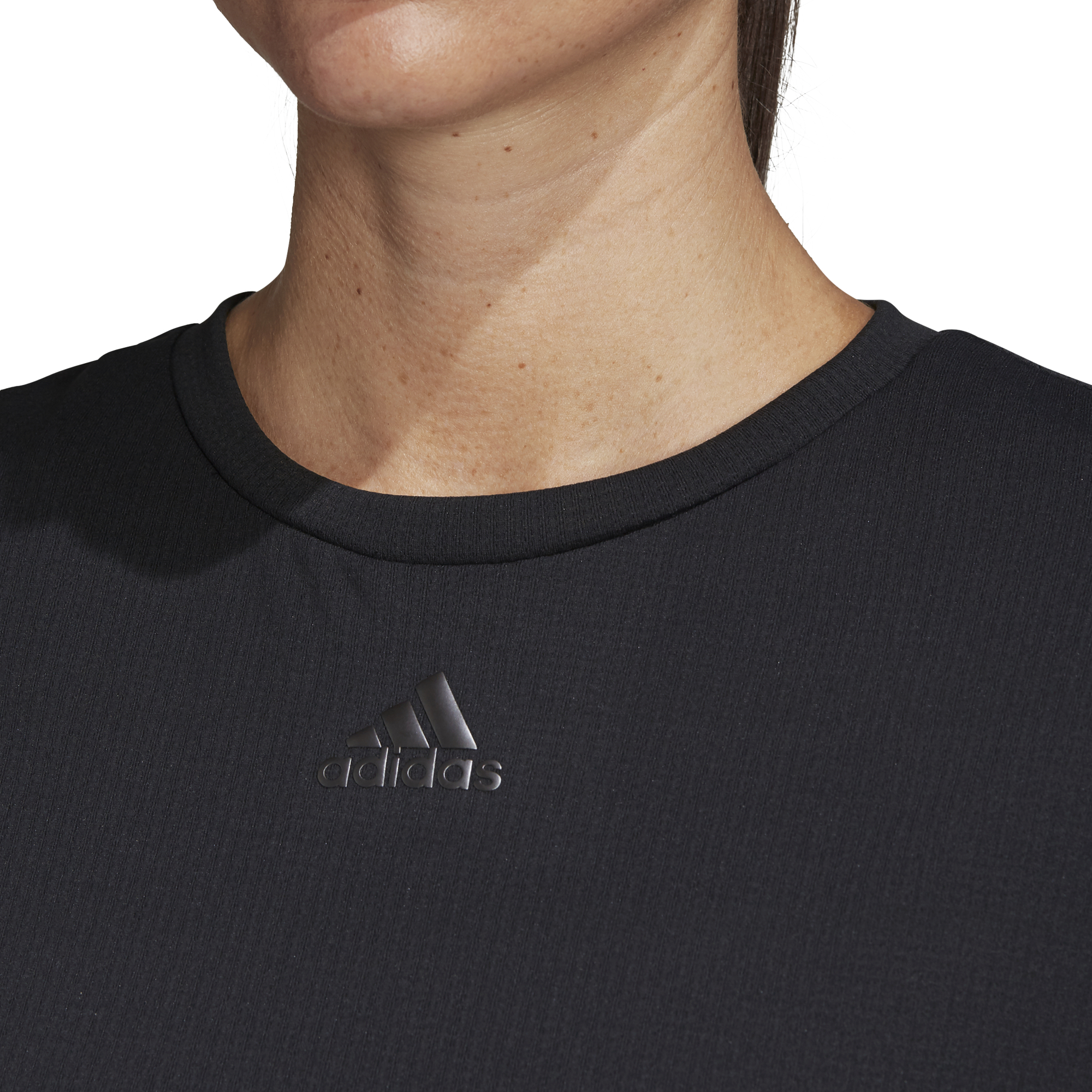 Adidas Women Tee Heat Ready - черный/ночной металлик Теннисная футболка Adidas Women Tee Heat Ready. Легкая и воздушная тенниска. Быстро отводит влагу и дарит ощущение комфорта и сухости. Футболка изготовлена по технологии HEATREADY.