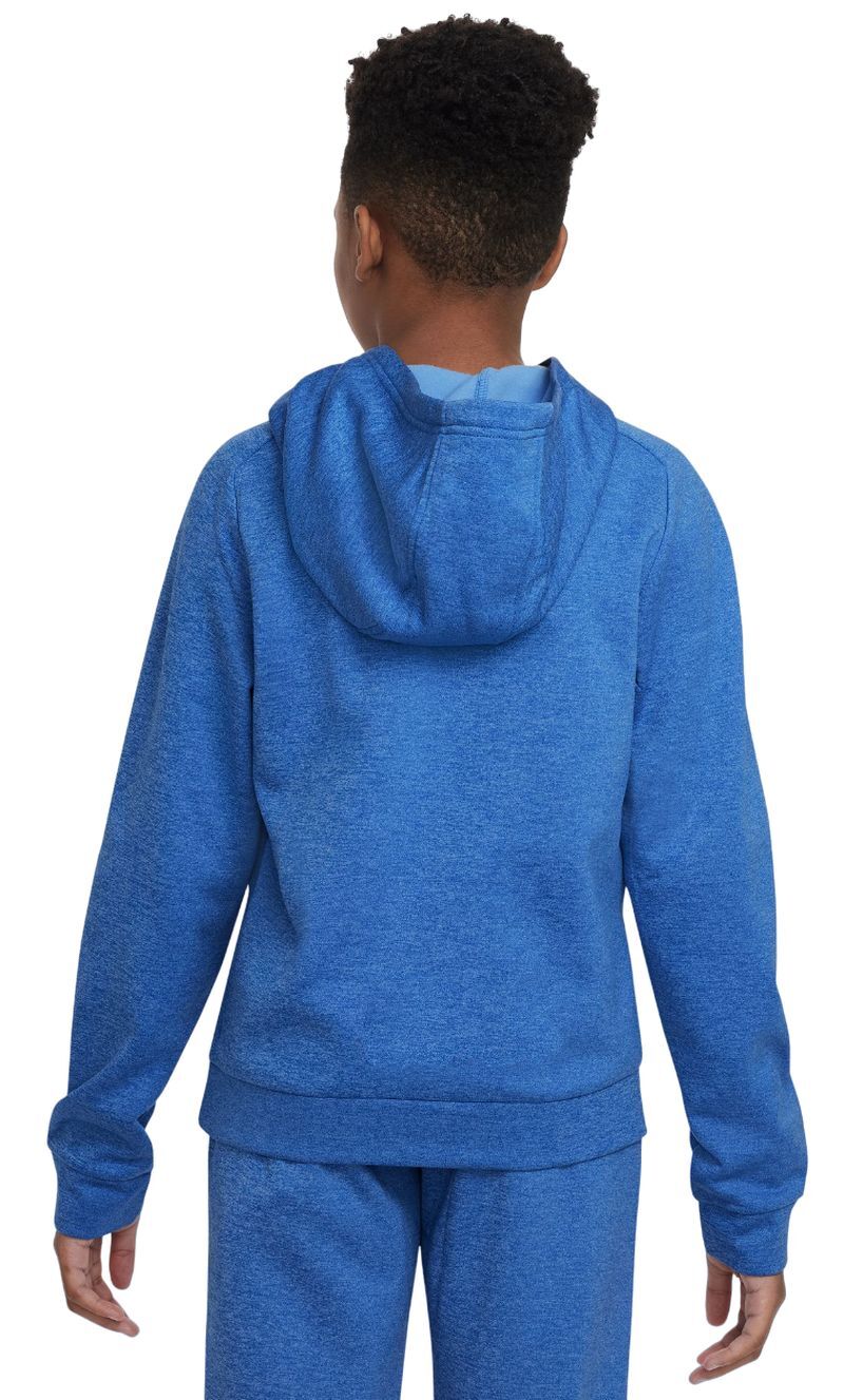 Пуловер с капюшоном Nike Multi+ Therma-FIT для мальчиков — игровой королевский/полярный/белый Худи из мягкого и теплого материала. Имеет передний карман с доступом с обеих сторон. Отверстия для пальцев на концах рукавов. Толстовка изготовлена по технологии THERMA-FIT.