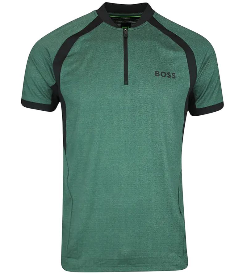 Мужская теннисная футболка BOSS MatchМяч TOC Zip-Neck Slim-Fit - open green