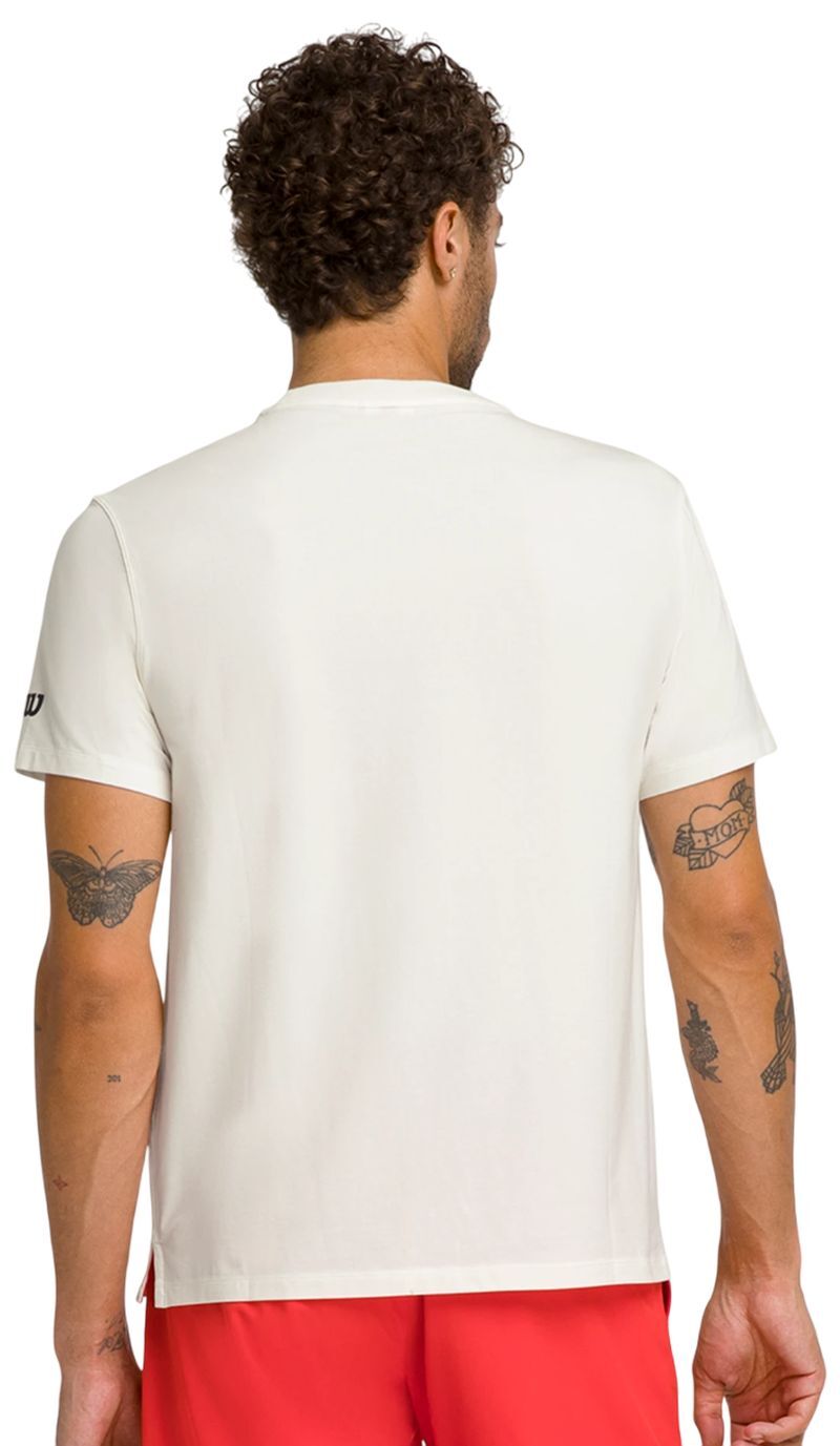 Мужская футболка Wilson Easy Street Классическая футболка простого, прямого кроя. Мягкий, приятный на ощупь материал. Слегка эластичная ткань адаптируется к телу, обеспечивая свободу и комфорт во время занятий спортом. Боковые разрезы увеличивают свободу движений. Плоские швы сводят к минимуму риск натирания и раздражения. Интересный графический мотив в центре футболки, отсылающий к теннису и самому производителю.