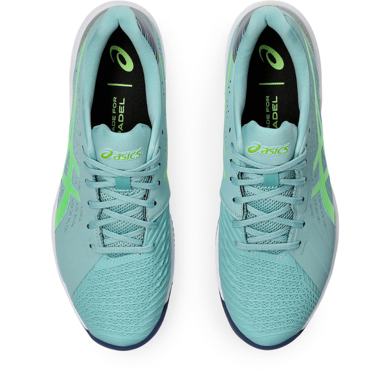 Мужские кроссовки Asics Solution Swift FF Padel - бирюзовый/электрический салатовый Многочисленные усиления в критических зонах повышают долговечность. Очень хорошая стабильность и феноменальная посадка. Модель Solution Swift обеспечивает очень хорошее ускорение, особенно на первых этапах взлета. Это было достигнуто за счет изменения конструкции протектора, что привело к улучшению сцепления под пяткой, передней частью стопы и носком. Это улучшает динамику движения и минимизирует время реакции. Кроме того, конструкция с многочисленными сетчатыми вставками обеспечивает оптимальную воздухопроницаемость. Были использованы следующие технологии: FLYTEFOAM, TWISTRUSS, ГЕЛЕВАЯ амортизирующая система для задней и передней части стопы. Обувь имеет подошву, предназначенную для игры на кортах для падел, оснащенную системой немаркировки.