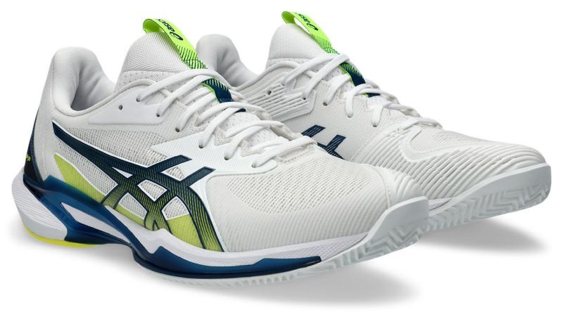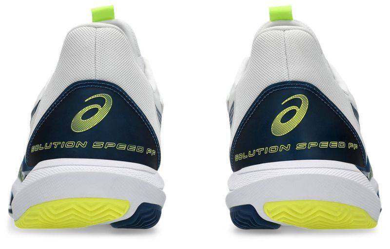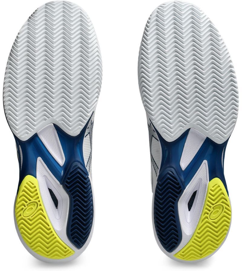 Мужские теннисные кроссовки Asics Solution Speed FF 3 Clay - белые/мако-синие Обновленная версия самой быстрой модели теннисных кроссовок Asics с новейшими технологиями. Легкая, гибкая и чрезвычайно динамичная конструкция кроссовок обеспечивает отличное ускорение от полной остановки до рывка, что позволяет игроку увеличить дальность игрового поля. Модернизированный верх из плотной сетки улучшает воздухопроницаемость, а стратегически расположенные усиления AHAR+ повышают долговечность, сохраняя при этом небольшой вес. Промежуточная подошва из энергетической пены FLYTEFOAM гарантирует первоклассную амортизацию и феноменальный отскок, а ее усовершенствование с помощью технологии 3D SPACE CONSTRUCTION дополнительно поддерживает определенные области под стопой. Алгоритмически созданный протектор обеспечивает лучшее сцепление в зоне пятки и носка. Система SPEEDTRUSS также используется для повышения устойчивости при боковых и косых движениях. Подошва кроссовок предназначена для игры на грунтовых кортах.
