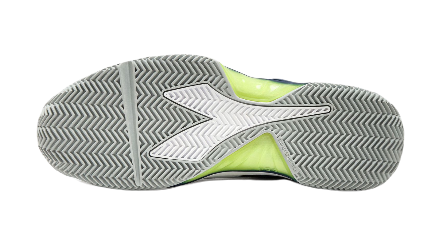 Мужские теннисные туфли Diadora B.Icon 2 Clay Модель предназначена для игроков, которым нужна гибкая, удобная обувь с адекватной поддержкой стопы. Верхняя часть верха из сетчатого материала обеспечивает хорошую воздухопроницаемость. Пятка, боковые стороны и точки, особенно подверженные истиранию, были дополнительно усилены. Встроенный язычок дополнительно фиксирует ногу в обуви, повышая устойчивость и комфорт. Пластина CCB в межподошве улучшает торсионную устойчивость области пяточной дуги. Прочность и долговечность увеличены за счет технологии D-Skin, используемой в верхней части. Резиновая подошва Duratech 5000 гарантирует отличное сцепление. Он также оснащен системой немаркировки, которая не оставляет следов на поверхности. Благодаря профилю протектора обувь предназначена для игры на грунтовых кортах.