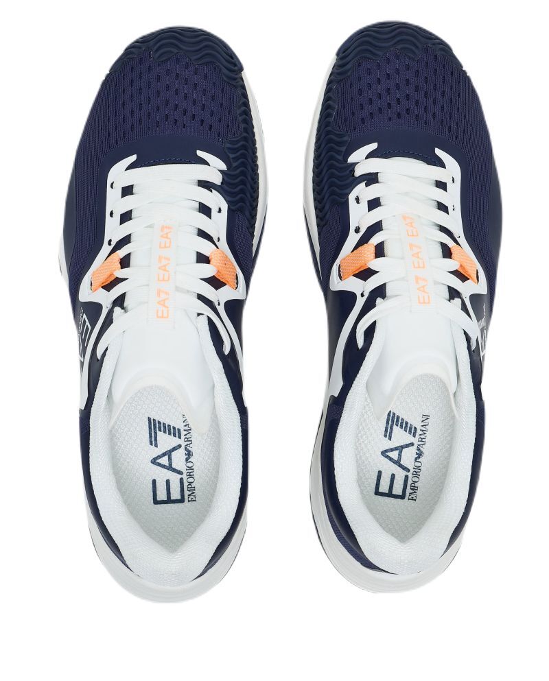 Мужские теннисные кроссовки EA7 Unisex Woven Sneaker - средневековый синий/белый Удобная и устойчивая обувь с элегантным внешним видом, которая является результатом дизайна итальянского модного дома EA7 Emporio Armani. Верхняя часть имеет многочисленные сетчатые панели, обеспечивающие хорошую вентиляцию. Наиболее подверженные истиранию зоны вокруг пятки и на внутренней стороне плюсны дополнительно усилены, что повышает долговечность. Полуинтегрированная конструкция язычка помогает более надежно удерживать ногу в обуви, обеспечивая дополнительную поддержку. Мягкая пенная промежуточная подошва гарантирует хорошую амортизацию. Логотип Emporio Armani снаружи добавляет стиля. Модель имеет универсальную подошву, которая хорошо подходит для различных типов теннисных покрытий.