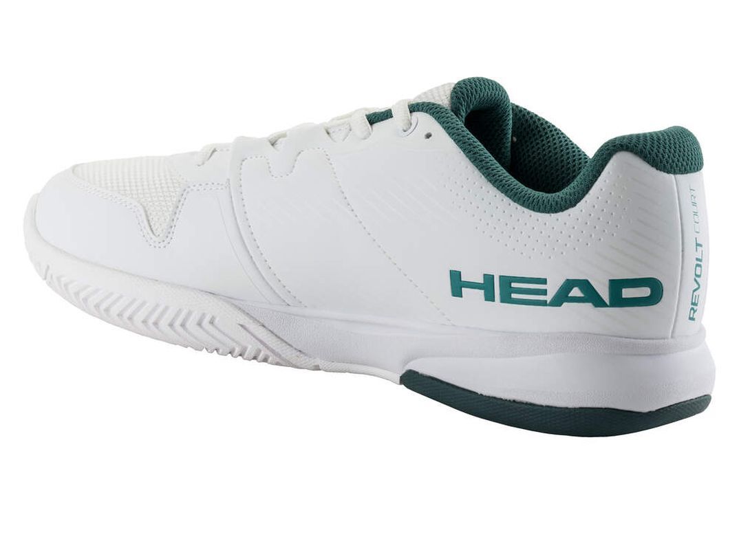 Мужские теннисные кроссовки Head Revolt Court - белые/сосново-зеленые Модель, обеспечивающая очень хороший уровень устойчивости и амортизации. Обувь специально усилена в уязвимых местах. Благодаря вентиляционным зонам сохраняется хорошая воздухопроницаемость, излишки влаги выводятся наружу. Обувь имеет универсальную подошву с системой, не оставляющей следов, для игры на любых поверхностях. Были использованы следующие технологии: HYBRASION+, STABILITY TRIGGER, LATERAL CONTROL.