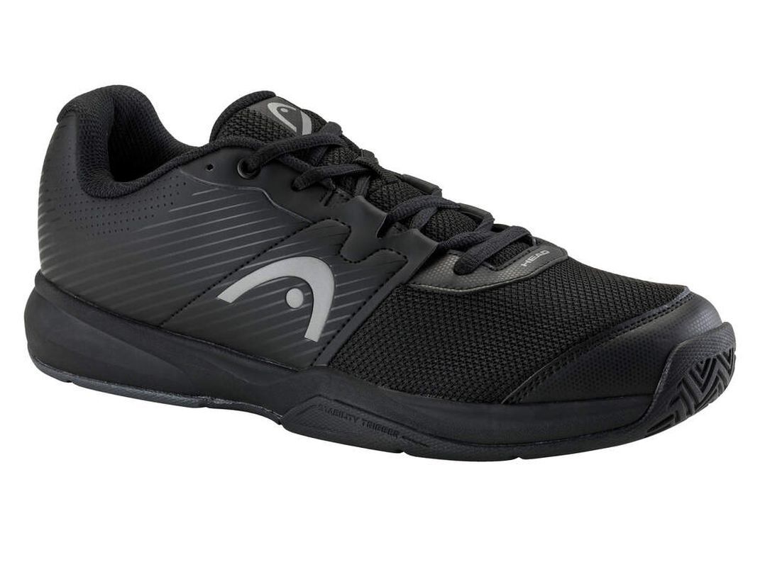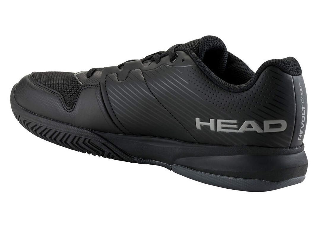 Мужские теннисные кроссовки Head Revolt Court - черные/серые Модель, обеспечивающая очень хороший уровень устойчивости и амортизации. Обувь специально усилена в уязвимых местах. Благодаря вентиляционным зонам сохраняется хорошая воздухопроницаемость, излишки влаги выводятся наружу. Обувь имеет универсальную подошву с системой, не оставляющей следов, для игры на любых поверхностях. Были использованы следующие технологии: HYBRASION+, STABILITY TRIGGER, LATERAL CONTROL.