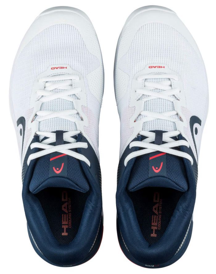 Мужские теннисные кроссовки Head Revolt Evo 2.0 - белые/темно-синие Модель с самым широким кроем среди кроссовок Head, идеально подходит для игроков, которым нужна обувь с очень широкой посадкой. Верх выполнен из гибкого сетчатого материала, обеспечивающего хорошую воздухопроницаемость и высокий комфорт игры. Особое усиление получили критические зоны, наиболее подверженные истиранию. Мягкая межподошва гарантирует оптимальную амортизацию. Обувь с универсальной подошвой, с системой non-marking, благодаря которой она не оставляет следов на твердых поверхностях. Были использованы следующие технологии: Tri NRG, Head Hybrasion+, Stability Trigger.