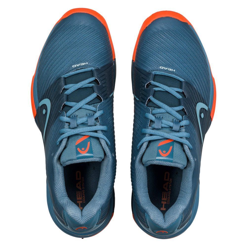 Мужские теннисные кроссовки Head Revolt Pro 4.0 Men - голубой/оранжевый Значительно улучшенная модель, популярная уже много лет. Новое воплощение оснащено новой технологией T-KORE 360, отвечающей требованиям современного тенниса. Обеспечивает идеальное сочетание вентиляции, стабильности и устойчивости к истиранию. Модель обеспечивает очень хорошую стабилизацию и амортизацию, что обеспечивает более высокий комфорт игры в любых условиях. В критических местах применялось подкрепление. Оригинальный дизайн сочетает в себе и эстетические аспекты. Использовались следующие технологии: T-KORE 360, TRI N-R-G, DRIFT DEFENSE, LATERAL CONTROL, LOCKDOWN STRAP, COOLING SYSTEM, HYBRASION+.