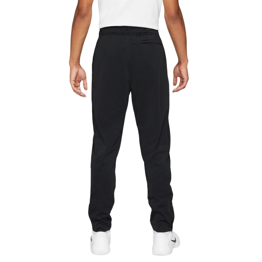 Мужские теннисные брюки Nike Court Heritage Suit Pant M - черные Эластичный материал на талии со шнурком обеспечивает идеальную посадку. Два боковых кармана. Небольшой задний карман закрывается на молнию. Ножки частично расстегиваются на молнии.