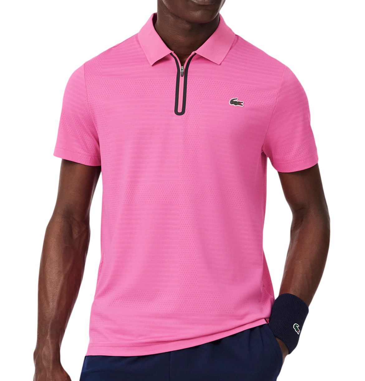 Мужское теннисное поло Lacoste Ultra Dry Stretch Jacquard Tennis - fushia pink