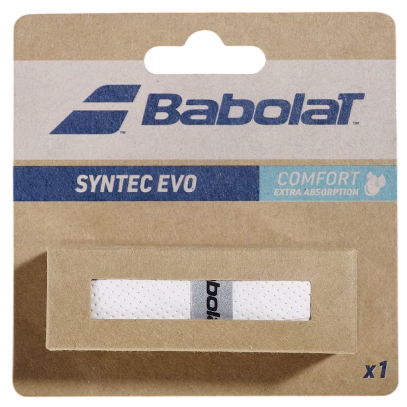 Babolat Syntec Evo (1 шт.) - белый Базовая накидка Syntec Evo обеспечивает комфорт, амортизацию и максимальное поглощение пота. Он имеет небольшую перфорацию, которая помогает впитывать влагу, сохраняя при этом достаточное сцепление! Syntec Evo немного толще Syntec Pro.