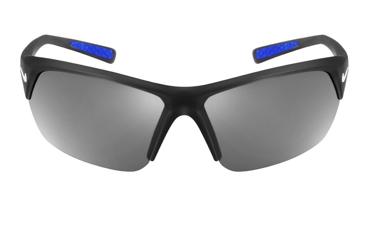 Очки Nike Skylon Ace — матово-черные/серые с синим зеркалом Сверхлегкие солнцезащитные очки, гарантирующие защиту во время тренировок и любых занятий спортом на открытом воздухе. Они имеют каркасы, изготовленные из прочного и в то же время очень легкого материала. Резиновый носовой упор со специальной текстурой уменьшает запотевание и обеспечивает отличную посадку и высокий комфорт при ношении, предотвращая падение очков. Наушники идеально прилегают к голове и отделаны специальным материалом с соответствующей фактурой. Оправа позволяет легко заменять линзы. В комплект входит тканевый чехол.