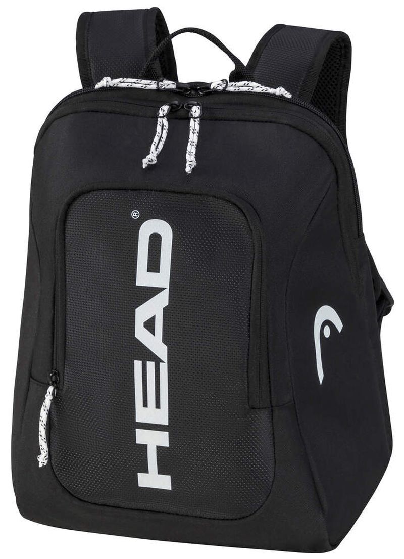 Теннисный рюкзак Head Kids Tour Backpack (14л) - черный/белый Имеет два основных отделения на молнии, одно из которых предназначено для ракетки. Второе, просторное отделение разместит необходимые вещи. Внутри имеется этикетка с личными данными. Один внешний карман для аксессуаров закрывается на молнию. Два регулируемых плечевых ремня - эргономичные и удобные, которые можно соединить спереди. Мягкие лямки и задняя часть рюкзака гарантируют комфорт даже при длительном ношении. Ручка для вертикальной установки рюкзака. Емкость: 14л.