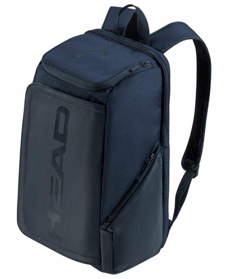 Рюкзак Head Pro - темно-синий Стильный и функциональный рюкзак, вмещающий одну ракетку. Оснащен двумя основными отделениями. Один предназначен для ракеток, другой, чрезвычайно вместительный и практичный, имеет доступ с двух сторон – сверху и спереди. Два внешних кармана для аксессуаров закрываются на молнии. Внизу имеется отдельный вентилируемый отсек для обуви или мокрой одежды. Два регулируемых и удобных плечевых ремня и вертикальная ручка обеспечивают комфортную переноску. Емкость: 28л.