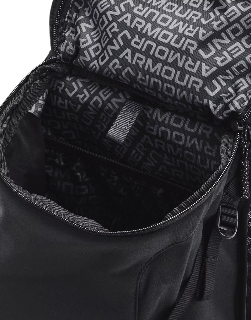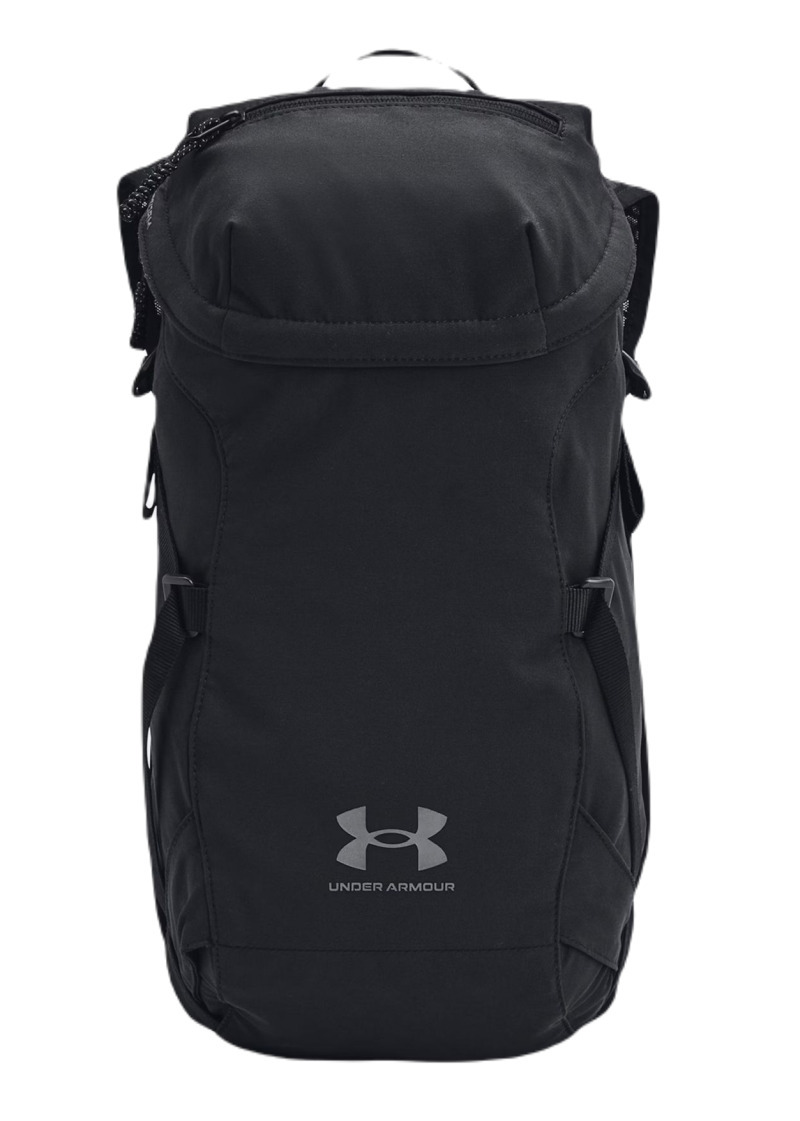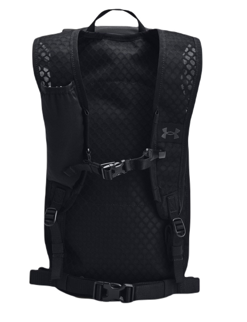 Рюкзак Under Armour Flex Trail - черный/каслерок Небольшой, очень практичный рюкзак объемом 13 литров. Он имеет одно основное отделение с органайзером внутри, который поможет держать вещи в порядке, а также мягкий карман на молнии для ценных аксессуаров. Многочисленные отделения для бутылки с водой или напитка обеспечивают удобный доступ. Система компрессионных ремней и регулируемый поясной ремень обеспечивают индивидуальную посадку. Два регулируемых ремня из воздушного сетчатого материала обеспечивают комфортное ношение. Рюкзак изготовлен из прочного полиэстера, который дополнительно водонепроницаем благодаря технологии UA Storm.