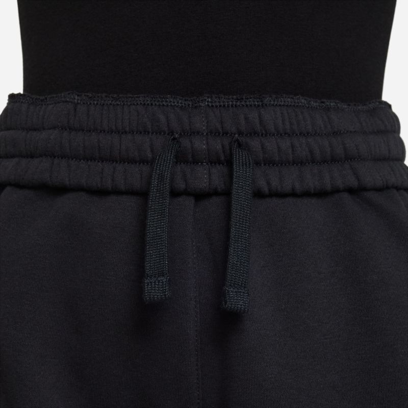 Флисовые брюки Nike Sportswear Club для мальчиков — черный/черный/белый Широкий эластичный пояс со шнурком обеспечивает хорошую посадку по фигуре. Два боковых кармана. Ножки отделаны эластичной лентой для лучшей посадки и комфорта при ношении. Слева логотип производителя.