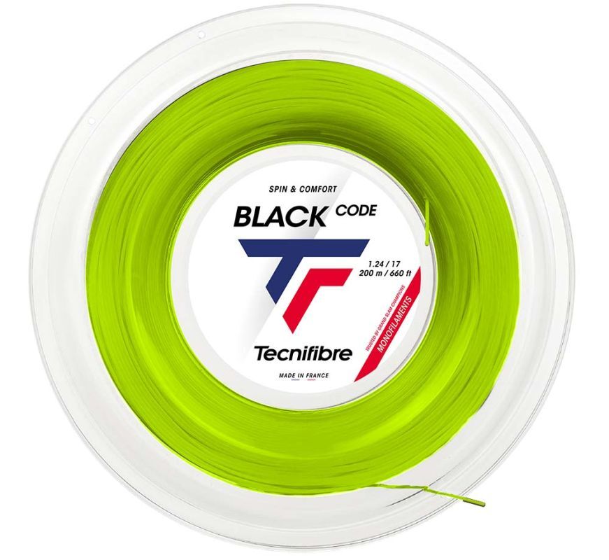 Tecnifibre Black Code (200 м) – огонь Струна из сополиэстера, изготовленная по новейшей технологии Thermocore для вращательной игры. Он характеризуется стабильностью напряжения и большим чистым полем попадания. Гибкий, что делает его очень удобным. Строку Black Code играют, среди прочего, Янко Типсаревич. По рекомендации производителя струна предназначена для ракеток весом более 300 г.