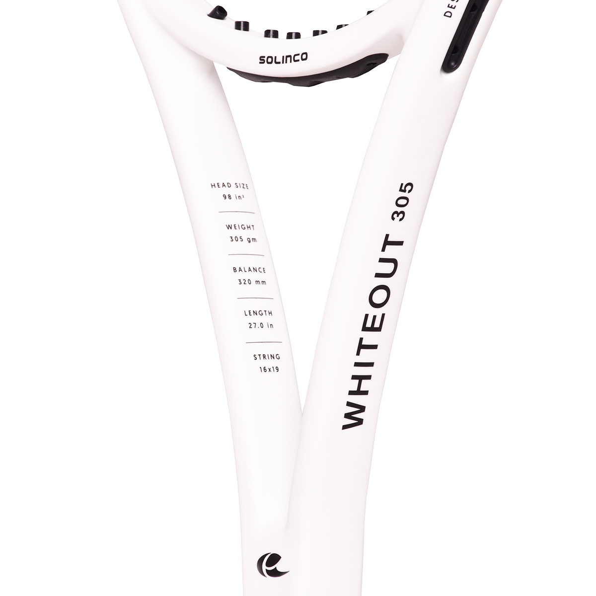 Теннисная ракетка Solinco Whiteout 305 Новейшее предложение от признанного производителя теннисного снаряжения высочайшего класса. После многих лет исследований и испытаний Solinco представляет в своем предложении теннисные ракетки. В соответствии с философией бренда, были использованы лучшие материалы, а качество изготовления было уделено вниманием даже к мельчайшим деталям. Гарантируется высочайшее качество ракеток. Слегка уменьшенная головка обеспечивает большую центральную зону удара с очень хорошим контролем. Вес обеспечивает очень хорошую устойчивость и силу удара. Тонкий профиль рамы отвечает за ощущение каждого удара. Благодаря используемым параметрам ракетка обеспечивает очень хорошую ударную силу, сохраняя при этом необходимый контроль. Очень хорошая возможность установки вращения. Расположение струн представляет собой идеальное сочетание ударной мощи, возможности вращения и контроля. Жесткость поддержит дополнительную динамику выстрелов. Были использованы следующие технологии: 40T CARBON Fiber, МОДУЛЬ КОНТРОЛЯ ВЕСА, ТЕХНОЛОГИЯ FOAM TECH CORE, ТЕХНОЛОГИЯ ЖИДКИХ КРИСТАЛЛОВ.
