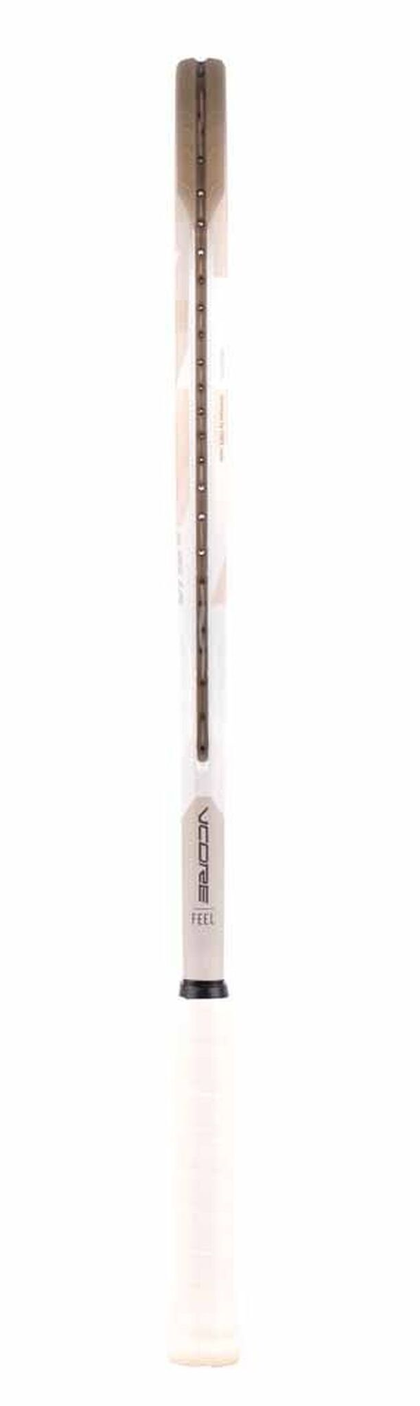 Теннисная ракетка Yonex Vcore Feel (250 г) Самая легкая и маневренная ракетка из серии VCORE в новом ярком цвете позволит тонко поддержать игрока в сохранении концентрации и исключении отвлекающих факторов. Небольшой вес облегчает управление, что делает ее подходящей для юниоров, которым нужна первая взрослая ракетка. Расположение струн было изменено с 16x19 на 16x18, что обеспечивает лучший доступ к вращению и динамике. Использованы технологии, известные по предыдущей модели: ISOMETRIC, Nanomesh Neo, Vibration Dampening Mesh. Были сделаны следующие обновления: • Использование технологии SIF Grommets. Конструкция люверсов с введенным в направляющие силиконовым маслом позволяет раме быстрее вернуться к исходной форме после удара, что обеспечивает лучший доступ к вращению. • Форма верхней части рамы, увеличенная на 1,9%, увеличивает центральную зону удара и возможность создания верхнего вращения. • Новый дизайн сердца повышает стабильность ракетки, обеспечивая более эффективную передачу энергии, вкладываемой в удар. Результатом также является лучший контроль