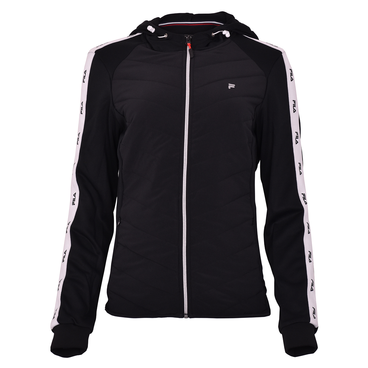 Куртка Fila Frida Женская - черный Застегивается на молнию во всю длину. Имеет капюшон с завязками для лучшей посадки. Два боковых кармана закрываются на молнии. Толстовка изготовлена из дышащего материала по следующим технологиям: QUICK DRY, BREATHABLE, SOFT TOUCH, DRY COMFORT, HIGH NEARING COMFORT.