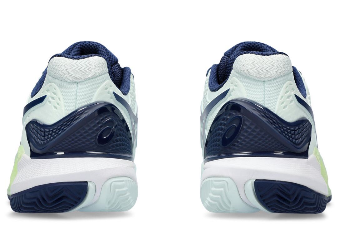 Женские теннисные кроссовки Asics Gel-Resolution 9 Clay - бледно-мятный/голубой простор Еще одна, девятая версия культовой модели Asics Gel-Resolution! Она обеспечивает еще лучшие свойства и еще лучшую производительность. Обновление было выполнено тщательно и с вниманием к каждой детали на основе биомеханических исследований и тестов спортсменов. Кроссовки, как и предыдущие версии, обеспечивают отличную стабилизацию и амортизацию. Новый верх с технологией FLEXION FIT более гибкий, обеспечивает высокий комфорт игры и хорошую воздухопроницаемость. Он был объединен со стабилизирующим элементом DYNAWALL, удлиненным к пятке. Это повышает устойчивость и поддержку стопы, особенно при боковых движениях. Передняя часть подошвы оснащена системой PGUARD для большей прочности и защиты от механических повреждений. Промежуточная подошва имеет первоклассные системы амортизации геля и пены по всей длине. Язычок, частично выполненный из сетчатой панели, увеличивает вентиляцию. Прочная подошва также обеспечивает идеальное сцепление. Другие используемые технологии: DYNAWRAP, AHAR+, REAR&FOREFOOT GEL CUSHIONING SYSTEM, REMOVABLE SOCKLINER. Модель имеет подошву, предназначенную для игры на грунтовых кортах.