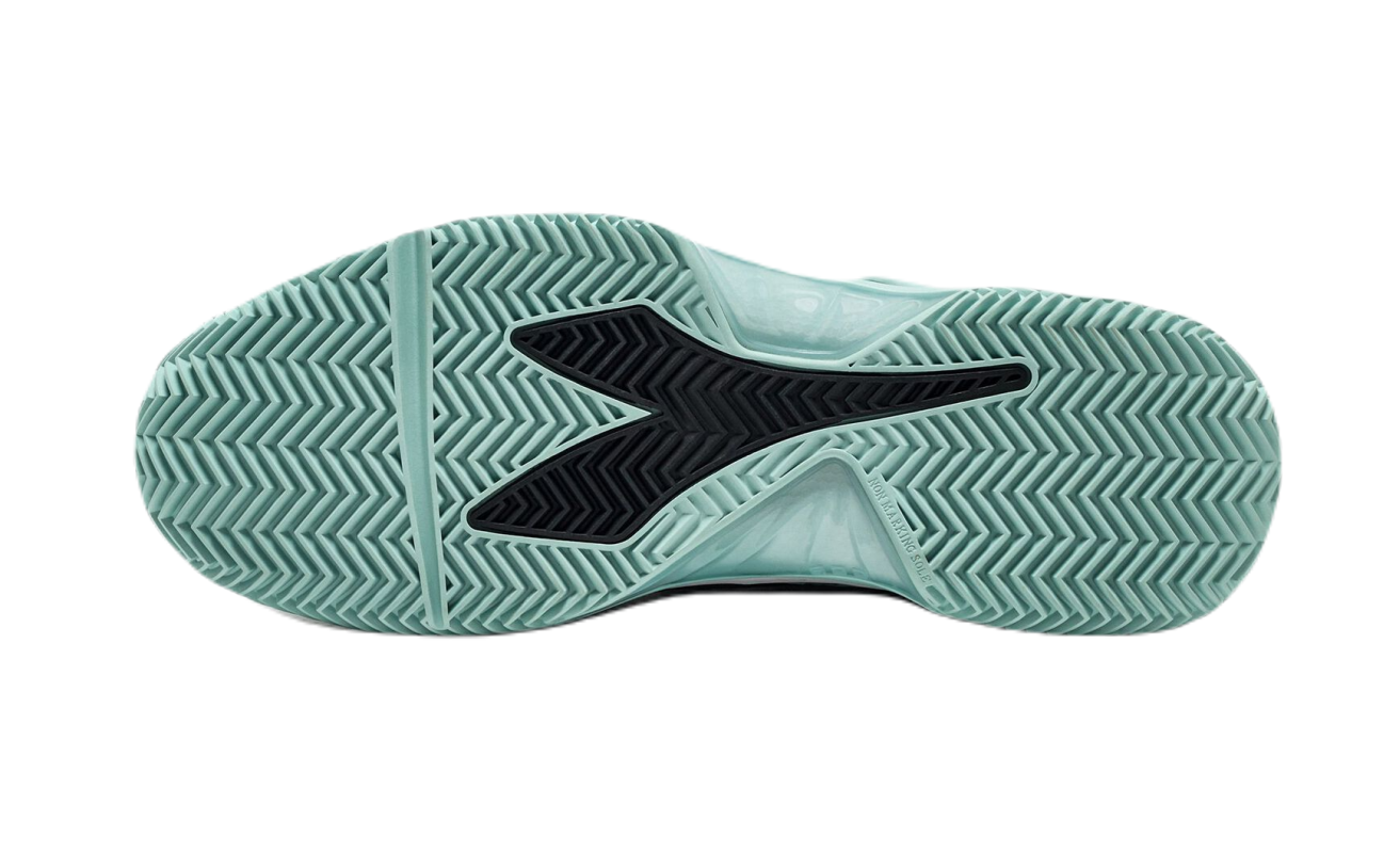 Женские теннисные туфли Diadora B.Icon 2 Clay - суф-спарай/черный Модель предназначена для игроков, которым нужна гибкая, удобная обувь с адекватной поддержкой стопы. Верхняя часть верха из сетчатого материала обеспечивает хорошую воздухопроницаемость. Пятка, боковые стороны и точки, особенно подверженные истиранию, были дополнительно усилены. Встроенный язычок дополнительно фиксирует ногу в обуви, повышая устойчивость и комфорт. Прочность и долговечность увеличены за счет технологии D-Skin, используемой в верхней части. Резиновая подошва Duratech 5000 гарантирует отличное сцепление. Он также оснащен системой немаркировки, которая не оставляет следов на поверхности. Благодаря профилю протектора обувь предназначена для игры на грунтовых кортах.