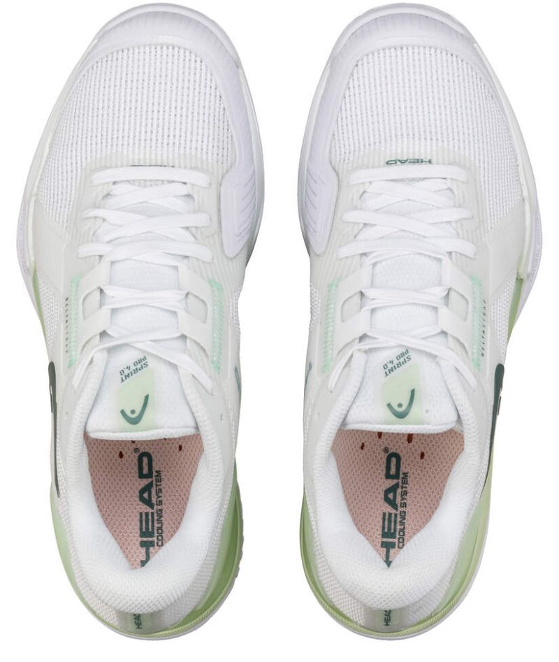 Женские теннисные кроссовки Head Sprint Pro 4.0 - белые/светло-зеленые Технологически продвинутая модель, сочетающая легкость и скорость с очень высоким комфортом при носке. Модернизированный сетчатый верх из термополиуретана стал еще более прочным и воздухопроницаемым, обеспечивая большую долговечность и комфорт. Встроенный внутрь язычок надежно удерживает ногу в обуви при резких движениях. Улучшенная технология Delta Strap с жесткими ремнями как снаружи, так и внутри верха обеспечивает лучшую устойчивость. Многочисленные усиления в критических зонах вокруг пальцев и пятки повышают износостойкость и уровень поддержки стопы. Новая пена EVA в промежуточной подошве гарантирует очень хорошую амортизацию и динамическую реактивность, а конструкция подошвы с низким вырезом минимизирует разницу в высоте между пяткой и носком, что позволяет еще быстрее передвигаться по корту. Обувь имеет универсальную подошву, оснащенную системой, не оставляющей следов, и предназначена для игры на любых поверхностях. Также использованы технологии: DRIFT DEFENSE, TRI-NRG, COOLING SYSTEM, HYBRASION+, LATERAL CONTROL, LANDING ZONE.