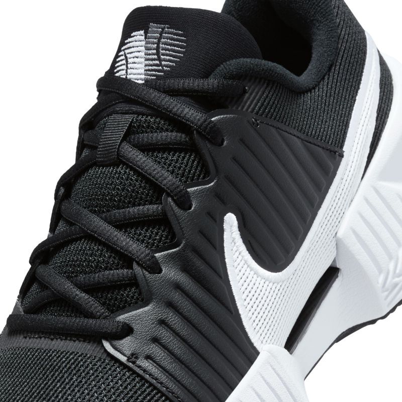 Женские теннисные кроссовки Nike Zoom GP Challenge Pro Clay - черный/белый/черный Модель, разработанная на основе особенностей обуви Nike Air Zoom GP Turbo, полюбившейся игрокам. Он позволяет справляться с агрессивными движениями на площадке, обеспечивая скорость и поддержку, не жертвуя комфортом. Он оснащен блоком ZOOM AIR, расположенным под пяткой, что обеспечивает еще большую динамику при приближении к выстрелу и дополнительно стабилизирует пятку. Мягкая пена в передней части стопы гарантирует первоклассную амортизацию. Верх из синтетической сетки и частично интегрированный язычок из сетчатого материала улучшают воздухопроницаемость и прилегают к ноге. Прочная резиновая подошва усилена в зонах повышенного износа и имеет более широкое основание для повышения устойчивости при движении. Модель имеет подошву, предназначенную для игры на грунтовых кортах.