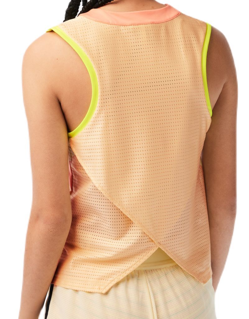 Футболка женская Lacoste Sport Roland Garros - персиковый Слегка эластичный верх хорошо адаптируется к телу. Широкий вырез на спине обеспечит свободу движений во время активности. Задняя часть топа изготовлена из перфорированного тонкого материала, обеспечивающего очень хорошую вентиляцию. Топ из коллекции, посвященной турниру Ролан Гаррос, украшен логотипом турнира и характерным логотипом производителя. Верх изготовлен по технологии: ULTRA DRY, STRETCH.