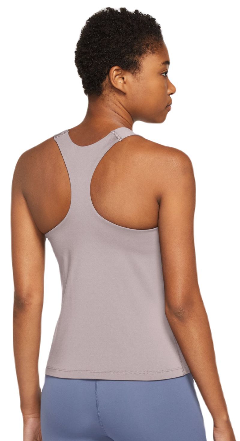 Женская майка Nike Dri-Fit Swoosh Bra - платиново-фиолетовый/платиново-фиолетовый/белый Гибкий материал позволяет хорошо прилегать к фигуре. Встроенный спортивный бюстгальтер с прочной резинкой внизу для повышенного комфорта во время занятий. Нежная сетка обеспечивает хорошую воздухопроницаемость. Эластичные бретели обеспечивают свободу движений. Верх выполнен из дышащего материала по технологии DRI-FIT.